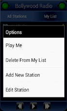 Create your own list of favourite radio & add new external radio stations to your List(Use Long Press on Radio Names for more options).